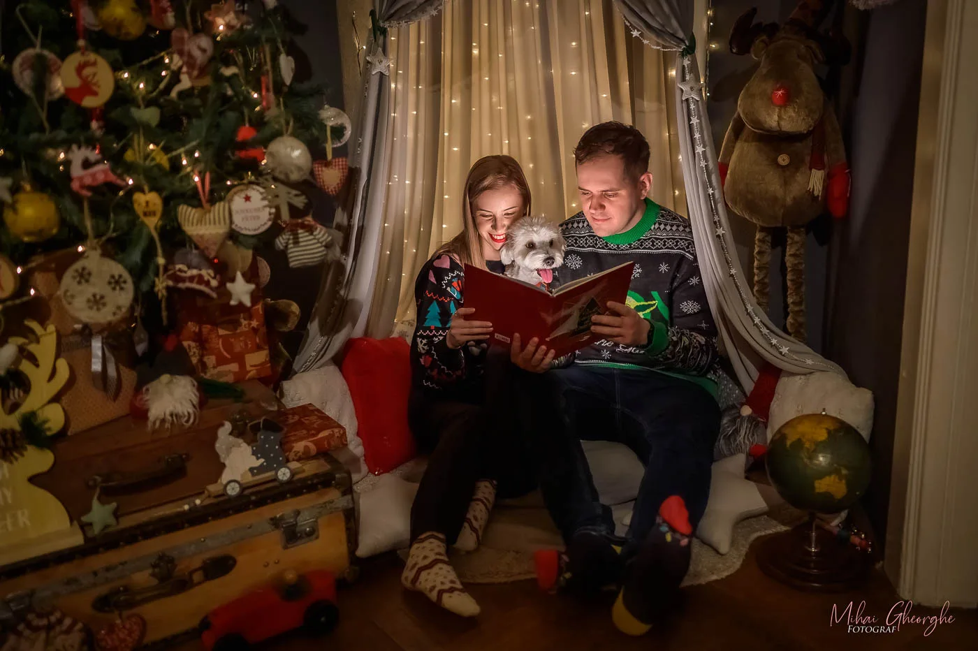 Am fost la Mihai pentru o ședință foto de Crăciun împreună cu prietena și cățelul nostru. Fotografiile au ieșit superbe!